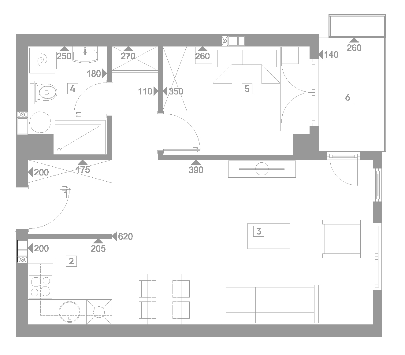 Стан бр. 2.11 Влезен хол 3.45 m² Кујна 4.00 m² Дневен престој 27.00 m² Бања 4.22 m² Спална соба 8.77 m² Тераса 3.04 m² вкупна квадратура 50.48 m² Резервирај термин Резервирај термин